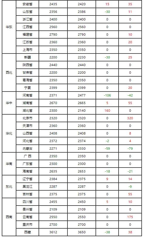 5、终端消费回暖支撑报价,主产区批发价小幅上行,区域价差逐步收窄。