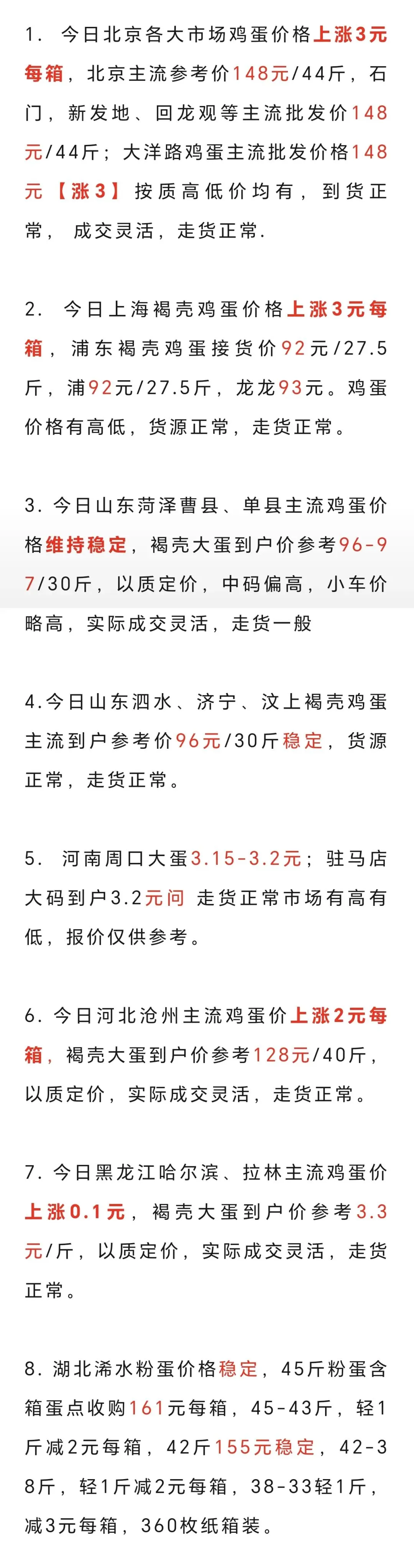 2026年3月22日各地鸡蛋价格 养羊网 2026-03-22 2026年3月22日各地鸡蛋价格 养羊网 2026-03-22 上一篇:今日猪价 | 2026.3.23明天猪价走势信息! 下一篇:【走向我们的小康生活】王家硕:养羊助脱贫致富奔小康 您可能还会对下面的文章感兴趣111: 相关文章 2025年4月13日全国各地生猪价格信息 【河南?南阳鸡蛋价格播报】2026年3月6日 避雷避雷济南胖永辉 近期价格更新!!!