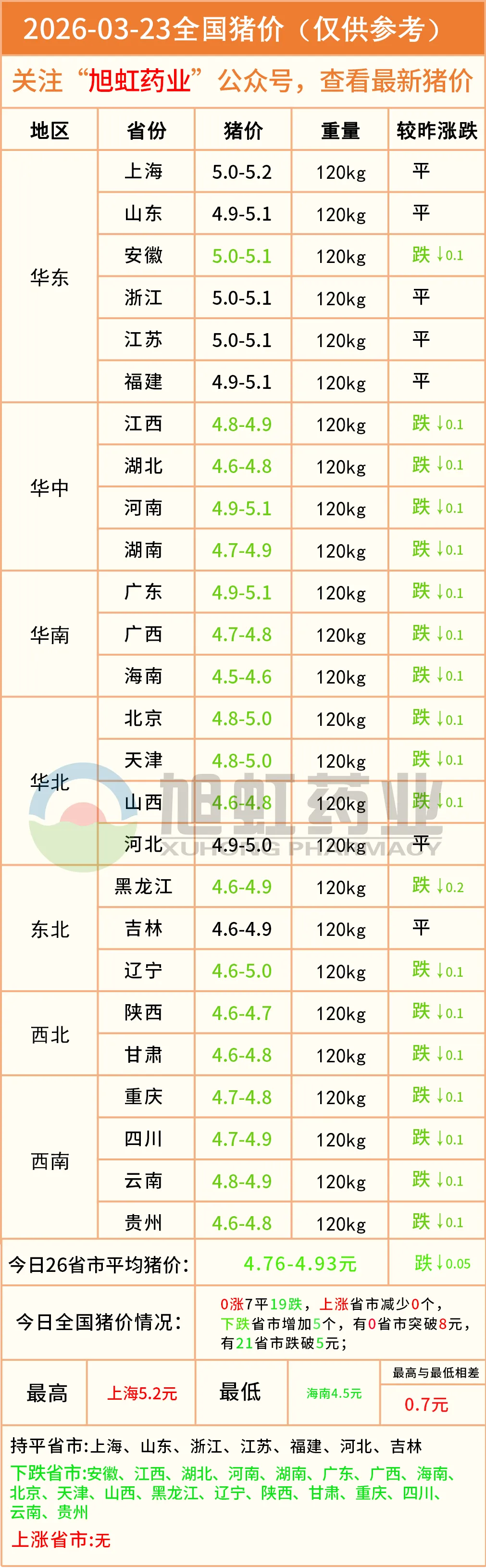 明日猪价——2026年03月23全国生猪价格! 养羊网 2026-03-22 明日猪价——2026年03月23全国生猪价格! 养羊网 2026-03-22 上一篇:2026年3月24日~3月26日!全国猪价! 下一篇:明天2026.3.23日鸡蛋价格预测 您可能还会对下面的文章感兴趣111: 相关文章 原价5娃没人收? 【明天猪价】2026.3.20全国猪价已更新) 【持续大涨】2026.01.20-全国猪价持续上涨,广东7.2元 今日猪价|【2026.1.21】最新猪价信息查询