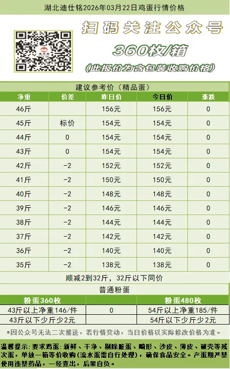 湖北迪仕铭2026年03月22日鸡蛋行情价格 养羊网 2026-03-22 湖北迪仕铭2026年03月22日鸡蛋行情价格 养羊网 2026-03-22 上一篇:3.23全国最新猪价 下一篇:2026年3月22日鸡蛋出仓价格 您可能还会对下面的文章感兴趣111: 相关文章 20260318鸡蛋价格早报 健康党看过来!贵阳特色火锅推荐选这家? 北京周日去哪里?吃烤全羊呢 鸡蛋价格是上涨了?还是下跌了?