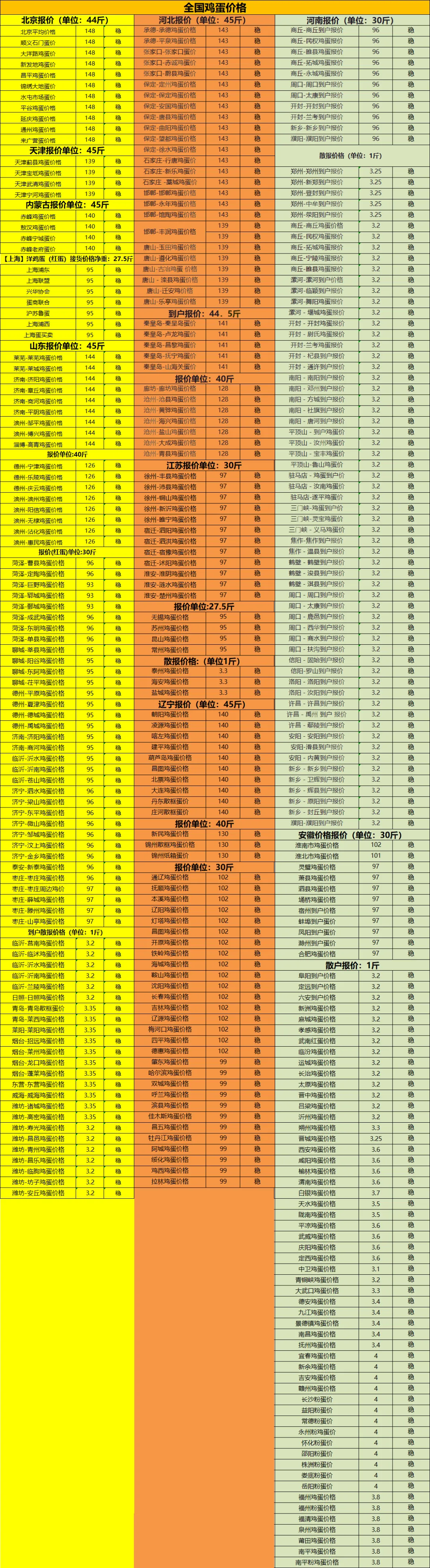 3.23全国鸡蛋价格 养羊网 2026-03-23 3.23全国鸡蛋价格 养羊网 2026-03-23 上一篇:【2026年3月23日】鸡蛋价格最新报价----持续更新中 下一篇:3月23日鸡蛋价格参考 您可能还会对下面的文章感兴趣111: 相关文章 2月1日广西鸡蛋价格参考,广西跌 惯性下跌,多地猪价调整!附1月22日猪价预测. 2025年4月13日全国各地生猪价格信息 3月6日成都鸡蛋价格参考