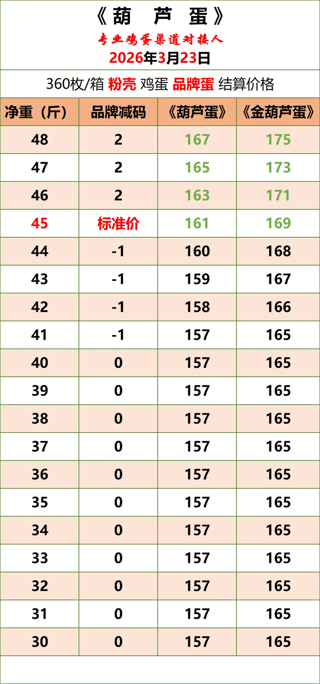 1、以上价格为《葫芦蛋》平台公示的鸡蛋含包装成交结算价(上车价),仅供与本平台渠道对接伙伴参考使用,不与其他任何报价作比较。