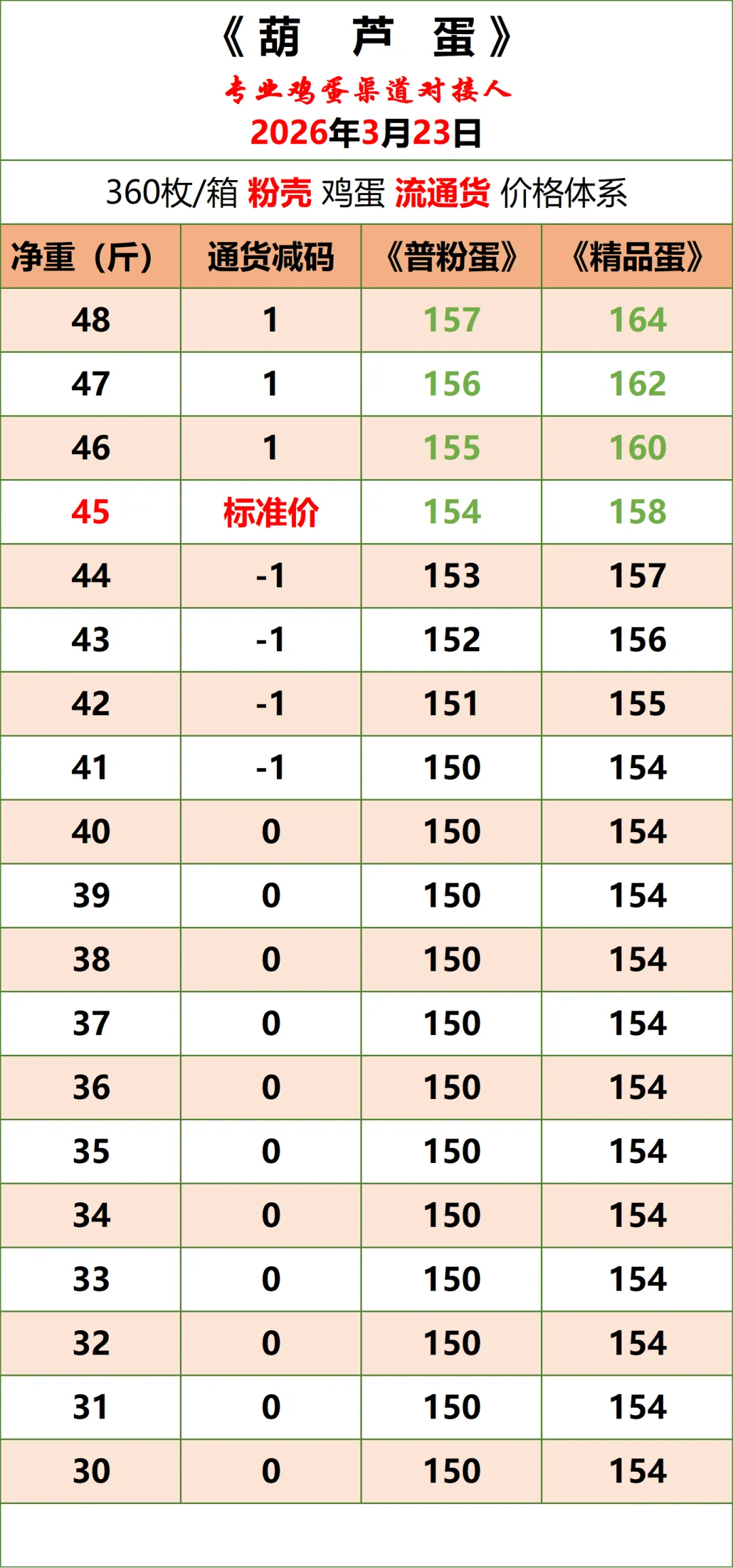 4、养殖场、贸易商日产量150件以上,可大车(至少6.8一车)直发的,支付合理信息维护服务费后,可按以上成交价格对接渠道,详情可来电约谈。