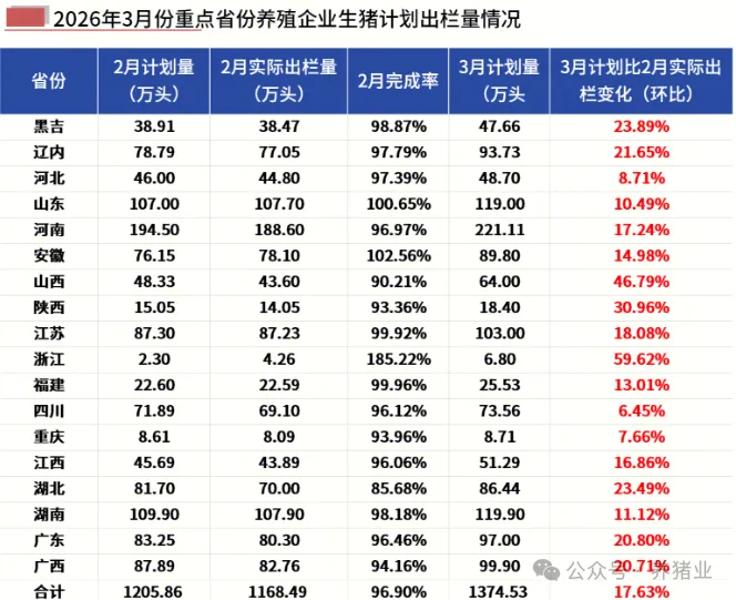 当前猪价下跌的核心原因在于供需关系的阶段性失衡。从生产周期看,2025年二季度能繁母猪存栏量仍处高位,按10个月生产传导周期,当前正处于产能集中释放期。与此同时,2025年1-7月行业持续盈利,刺激养殖端尤其是放养模式加速扩张,叠加规模化养殖比例提升后企业产能去化意愿减弱,共同奠定生猪出栏维持高位的基调。短期供应压力更为凸显。据Mysteel监测,重点省份规模养殖企业3月生猪计划出栏量环比增幅达17.63%,其中山西、浙江等地增幅超过46%和59%,出栏压力集中显现。此外,北方地区标肥价差出现倒挂,倒逼大体重猪源加快出栏,进一步加剧市场供给压力。