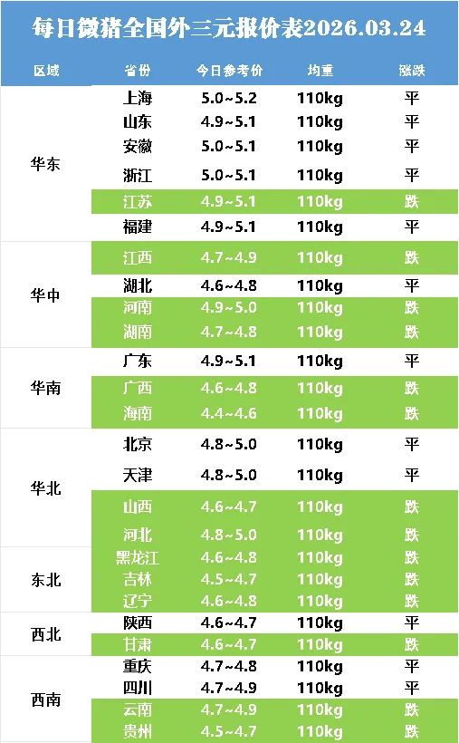 明日最新猪价2026.03.24点击蓝字关注 猪价不错过