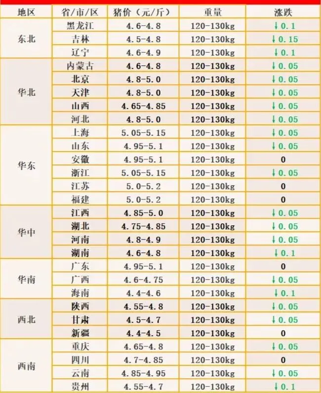 3月23日全国(玉米 豆粕有降)猪价:0涨6平22跌