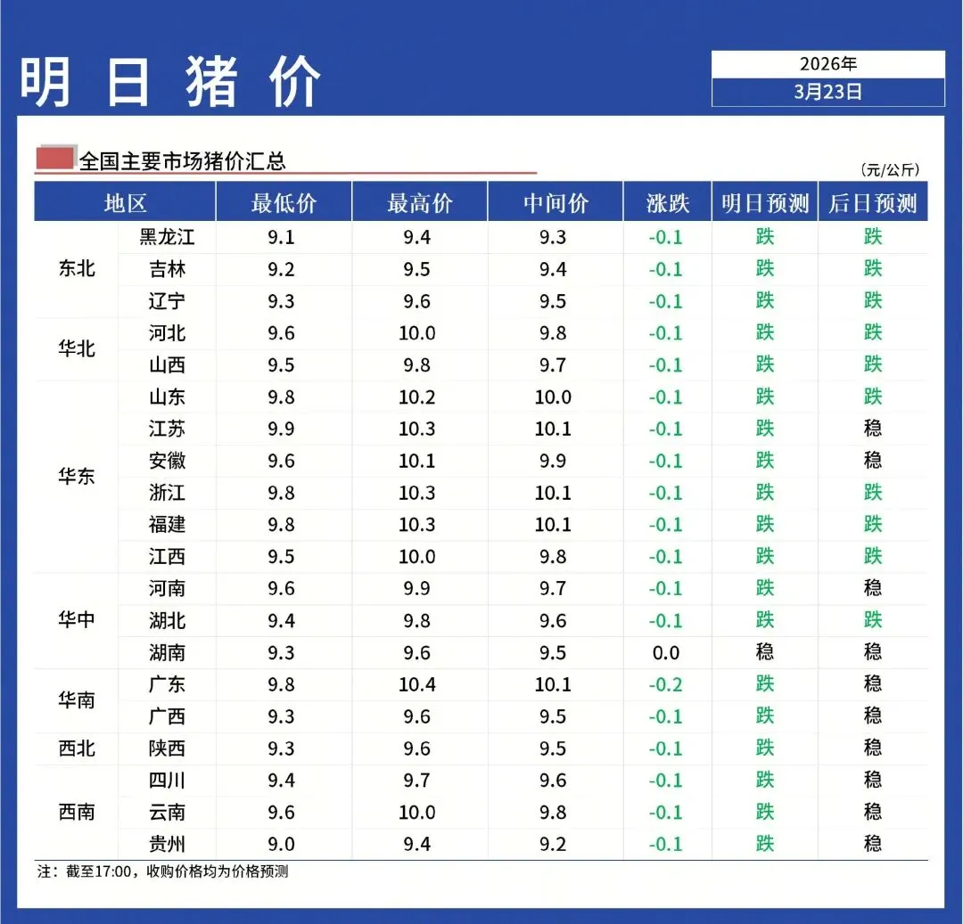 【明天猪价】3月24日全国猪价继续下跌!