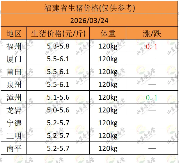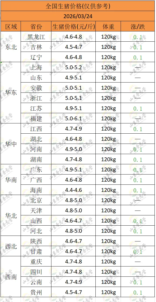 全国各地明日猪价(2026.03.24)-山里香惠营
