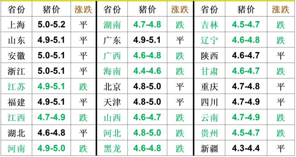 今天下午,我一个吉林的老客户打电话来,声音都变了:“张哥,我这猪4.6都没人要了,收猪的给4.5,卖不卖?”我让他别急,等晚上报价出来再说。现在数据来了——老铁,你这价,还真没报错。