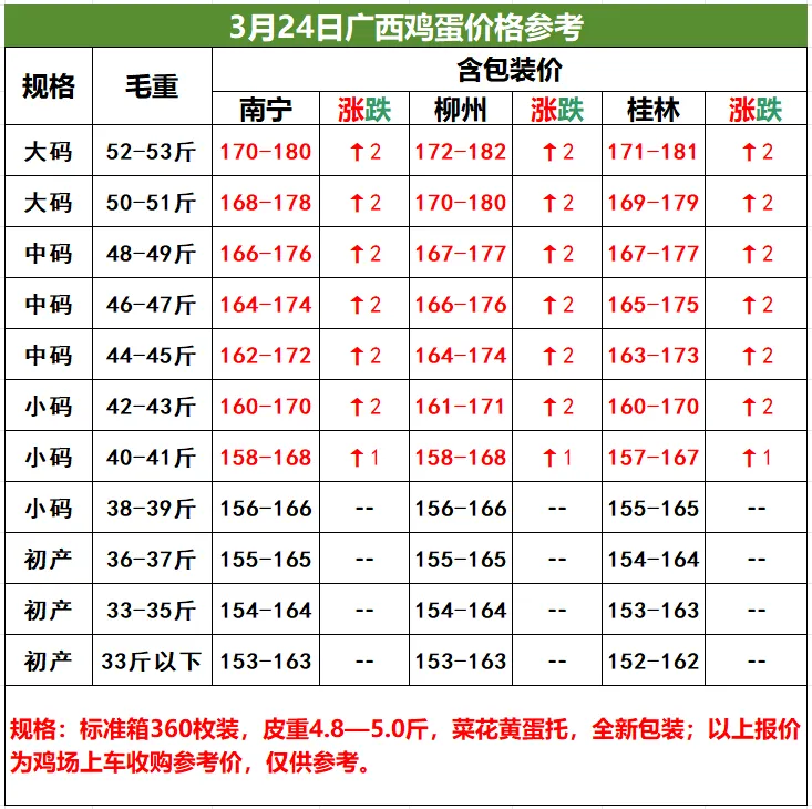 3月24日桂林、柳州、南宁鸡蛋价格参考