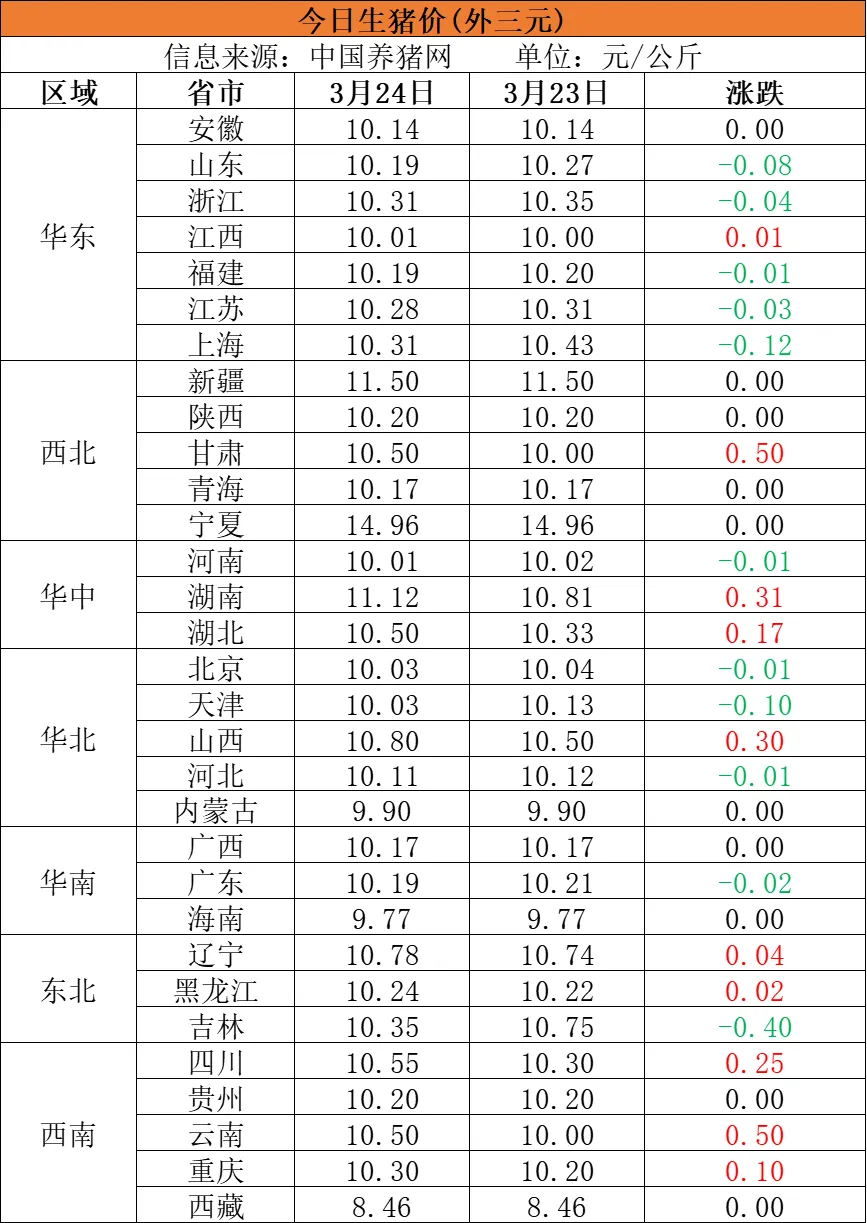 【3月24日猪价】猪价再次涨跌调整,月底上涨期望落空?