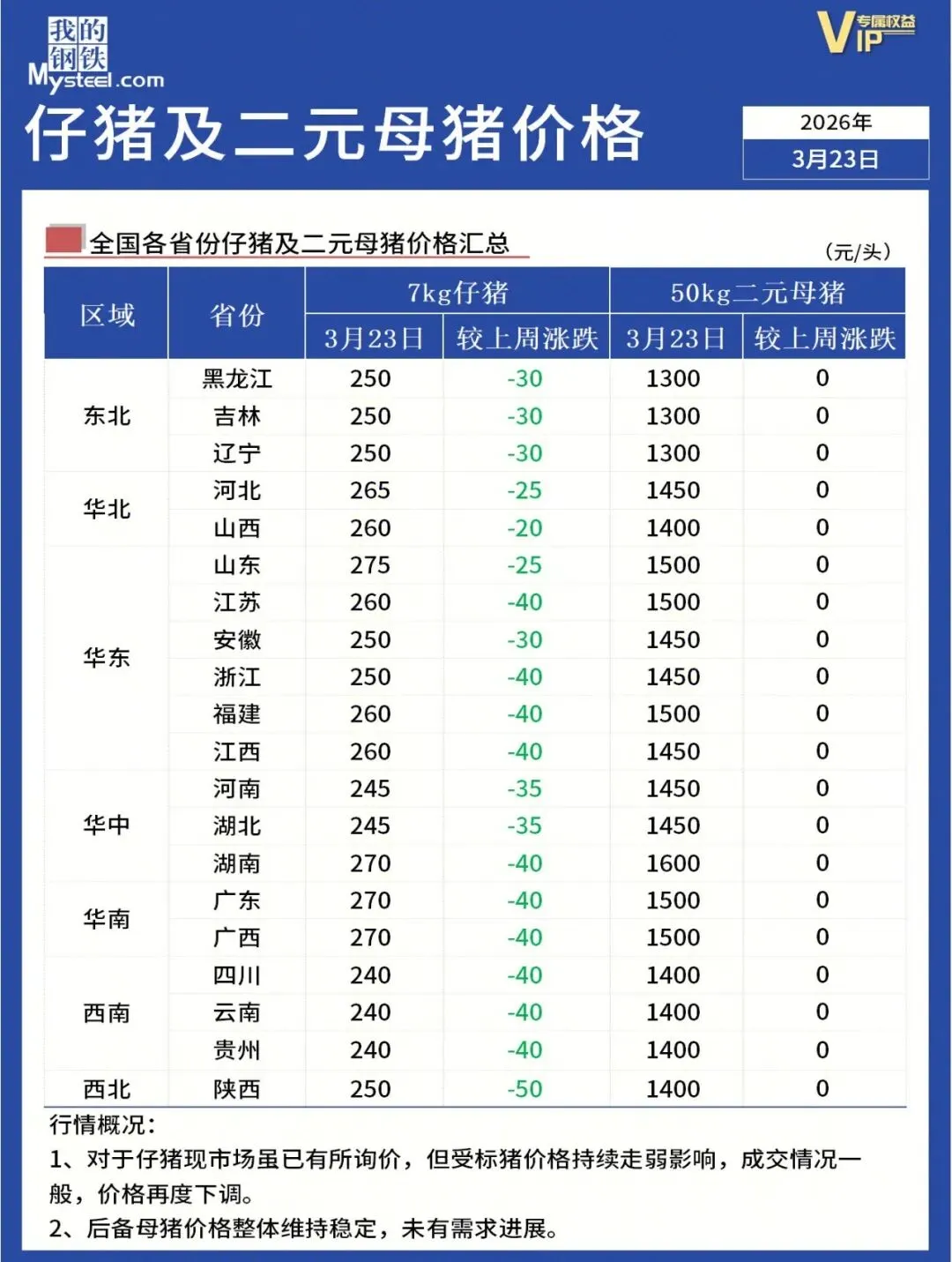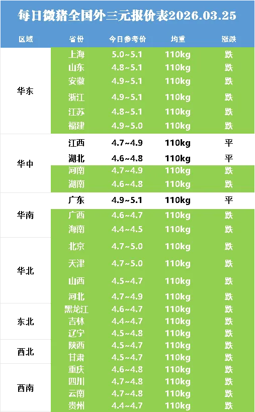 明日最新猪价2026.03.25——仔猪价格继续下调!点击蓝字关注 猪价不错过
