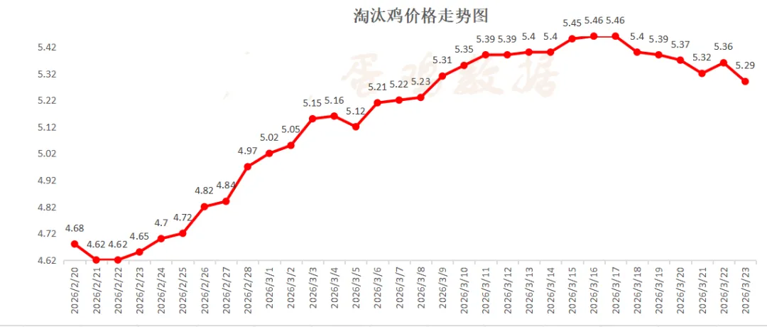 昨天淘汰鸡均价5.29元/斤,下跌0.07元/斤 主产区淘汰鸡价格今日连续回落,淘汰鸡价格和鸡蛋价格走势再次分化。由于鸡蛋价格的反弹不及预期,再加上饲料价格上涨,养殖端淘汰老鸡的情绪仍在。 不过马上就到4月份了,五一前屠企备货需求量比较大,很多蛋鸡养殖企业对五一前的行情有期待,近期淘汰鸡数量变化预计不大,价格也可能止跌企稳运行。