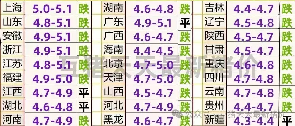 最新全国猪价: