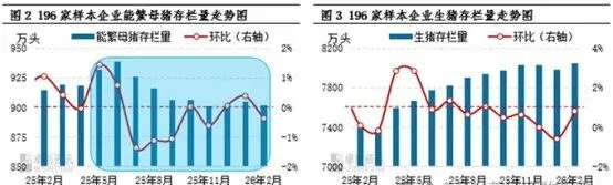 猪价持续下行的根本原因是市场供应过剩,叠加需求季节性疲软。供应端,能繁母猪和生猪存栏量持续高位:2025年能繁母猪存栏呈“先增后减再盘整”态势,2026年2月份样本企业能繁母猪存栏较2025年6月高点仅下滑3.95%,未达去产能目标。 2025年末全国能繁母猪存栏3961万头,仍高于3900万头正常保有量;同时行业生产效率提升,主流猪场PSY普遍提升1-2头,部分达27-28头,对冲了母猪减少的影响,2026年生猪预计出栏72100万头,同比微增0.18%。需求端,3-8月份为传统消费淡季,终端需求寡淡,猪价变动主要受供应端主导,9月份后需求才会逐步好转。 四 、破局之路:养户如何渡过行业至暗时刻?