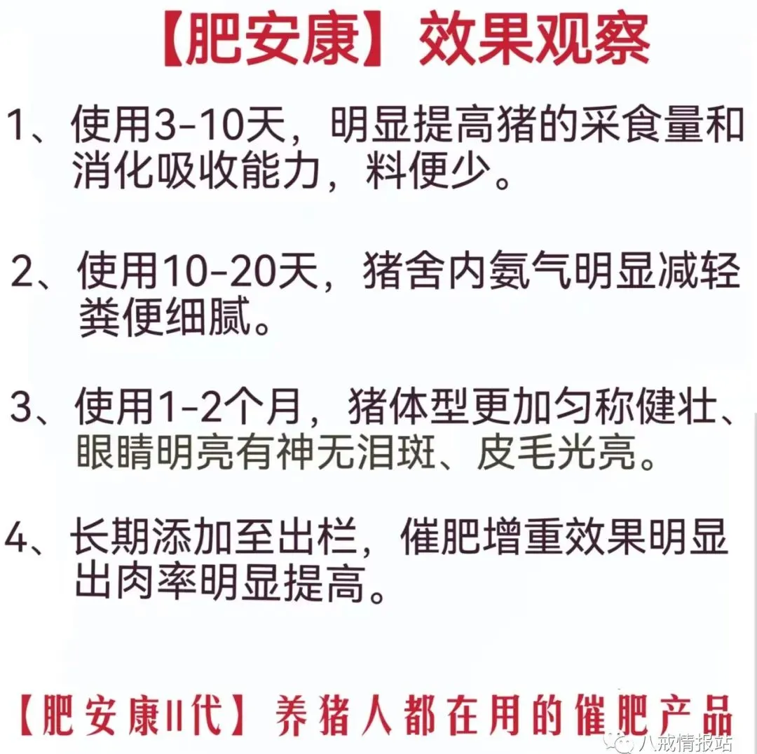 四川谭哥?新在?疆养猪,育肥猪一直全?添程?加的【肥安康】谭?说哥?这个催肥产品?果效?很明显,之?也前?用过很多催肥产品,都?啥没?用,【肥安康】这个?品产?用一段明显?感能?受到猪的?长生?速度,猪的粪?细便?腻,没?不有?消化的饲?颗料?粒,接着又发了四件。 已关注关注重播 分享 赞 已关注关注重播 分享 赞 已关注关注重播 分享 赞 已关注关注重播 分享 赞