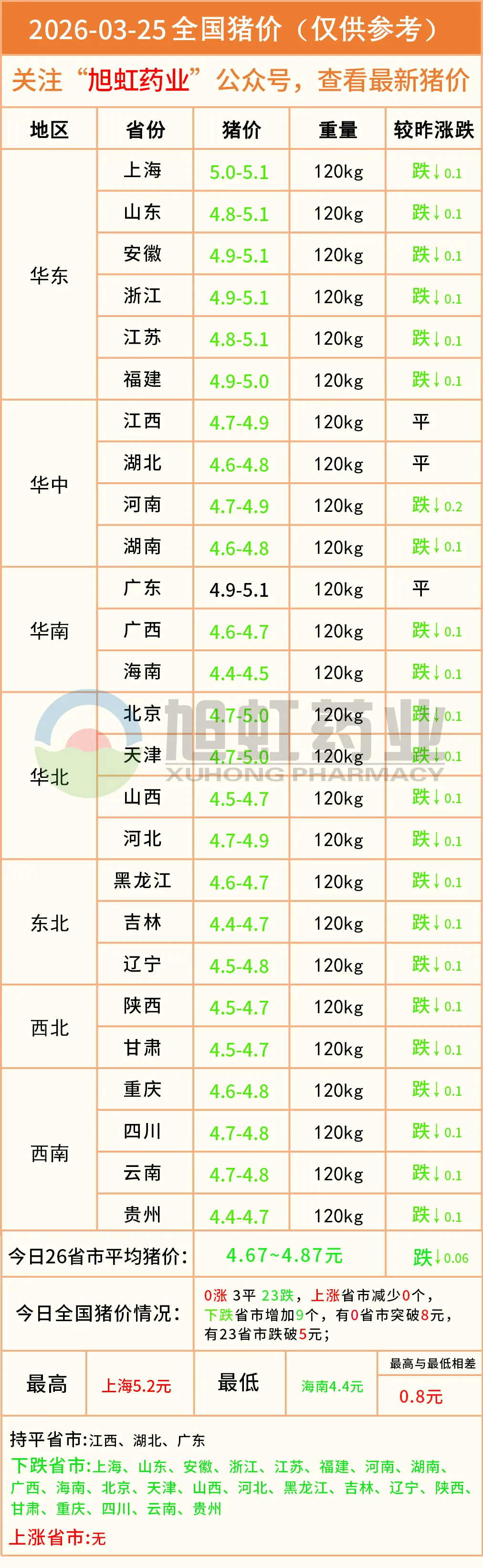 明日猪价——2026年03月25全国生猪价格! 养羊网 2026-03-24 明日猪价——2026年03月25全国生猪价格! 养羊网 2026-03-24 上一篇:2026年3月25日猪价(绿的心慌)每日新增淘汰母猪价格、福建区域各阶段肥 下一篇:【明天猪价】2026.3.25全国猪价已更新) 您可能还会对下面的文章感兴趣111: 相关文章 全国各地(2026.2.8)明日猪价(已更新!) 近期价格更新!!! 浙江绍兴有没有自家刚生出的金渐层 今日猪价行情 2023年7月11日