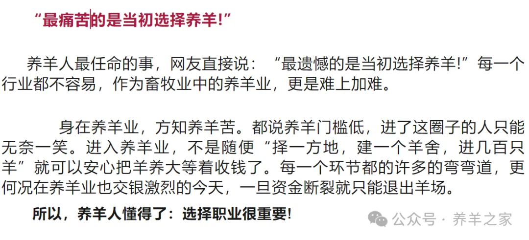 养羊,养的不是羊,养的是自己生活,是自己的“孩子”,有人说,如今的羊这么难养,除了外国羊的”捣乱”、环境变你给的因素之外,最原因的是养羊人对羊“太好了”。对孩子的宠爱,是对孩子未来的伤害,养羊也是如此。养羊人,你最痛苦或最遗憾的养羊时刻是什么?