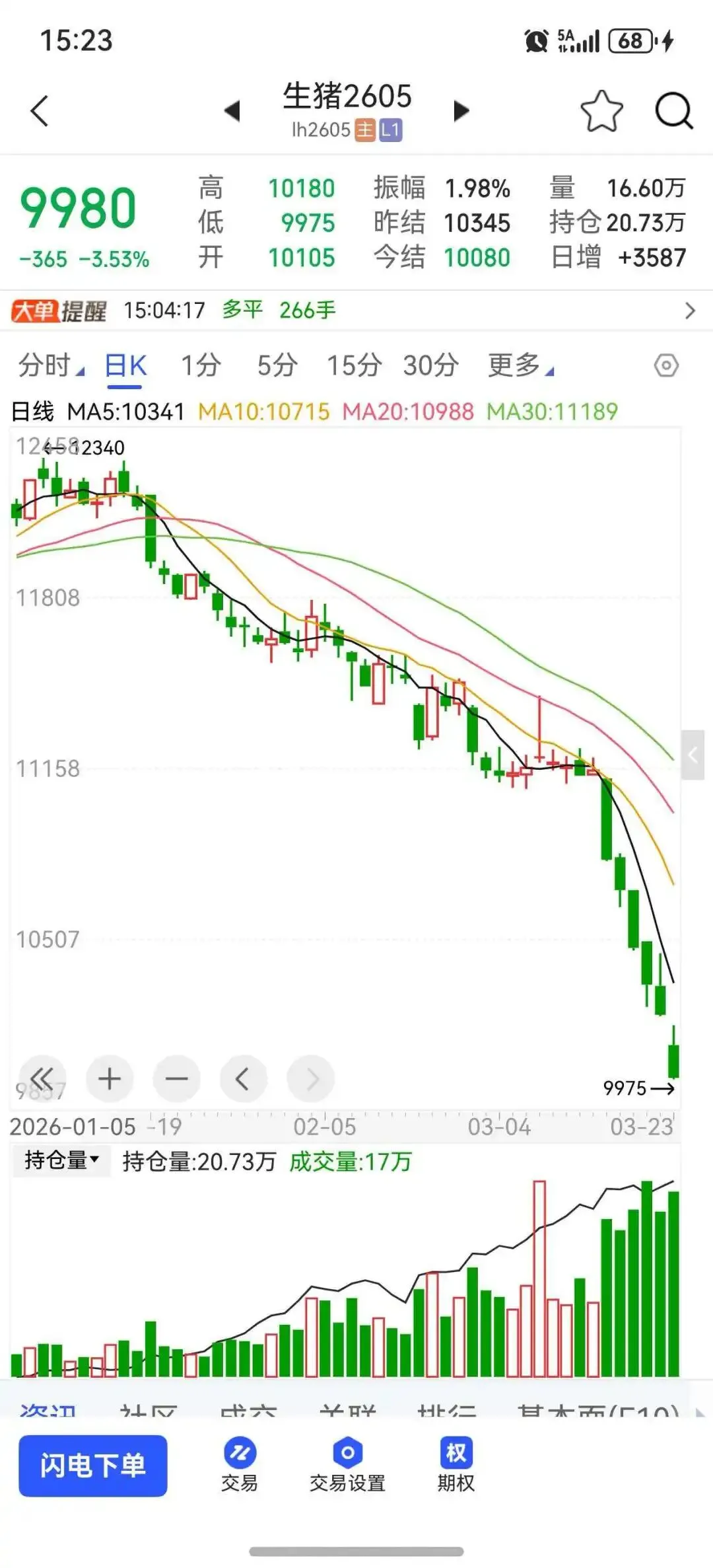 然而今天,2026年3月19日,现货均价已不足10元/公斤(即5元/斤),期货也仅维持在10.5元/公斤左右 。如果不考虑通胀因素,现在的价格已经直逼2018年的低点。