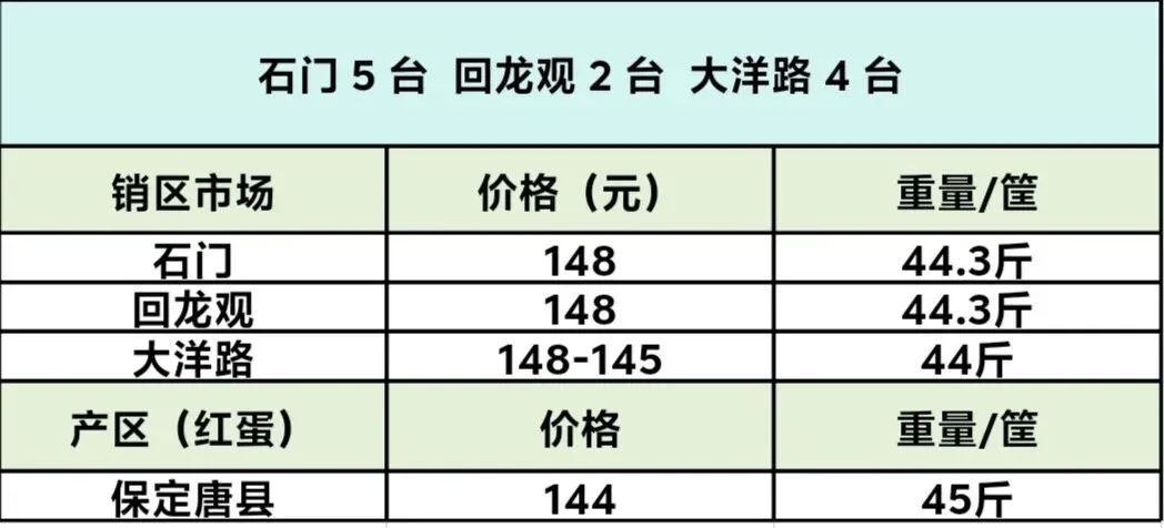 大洋路鸡蛋价格2026年 3 月 25 日报价 养羊网 2026-03-25 大洋路鸡蛋价格2026年 3 月 25 日报价大洋路 4 台,价格 148-145 元,走货稍快,没剩车,明天回车预计 3-4 台附近。 养羊网 2026-03-25 上一篇:2026.03.25德邻生物鸡蛋价格早报(仅供参考) 下一篇:2026年3月25日鸡蛋价格行情 以稳为主 您可能还会对下面的文章感兴趣111: 相关文章 开洲九鼎 猪价播报(2026.2.11) 让牛马养羊这究竟是怎样的一家公司? 2月8日:贵州、广西、广东鸡蛋价格;继续稳定! 近期价格更新!!!