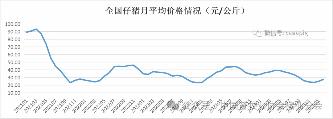2、2026年2月份全国仔猪价格27.57元/公斤,环比上涨10.3%,同比下跌23.9%。