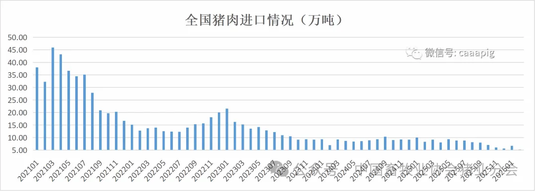 5、2026年1-2月累计进口猪肉11.96万吨,同比下降34.9%。