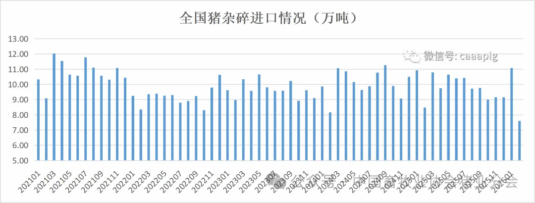 6、2026年1-2月累计进口猪杂碎18.66万吨,同比下降4.0%。