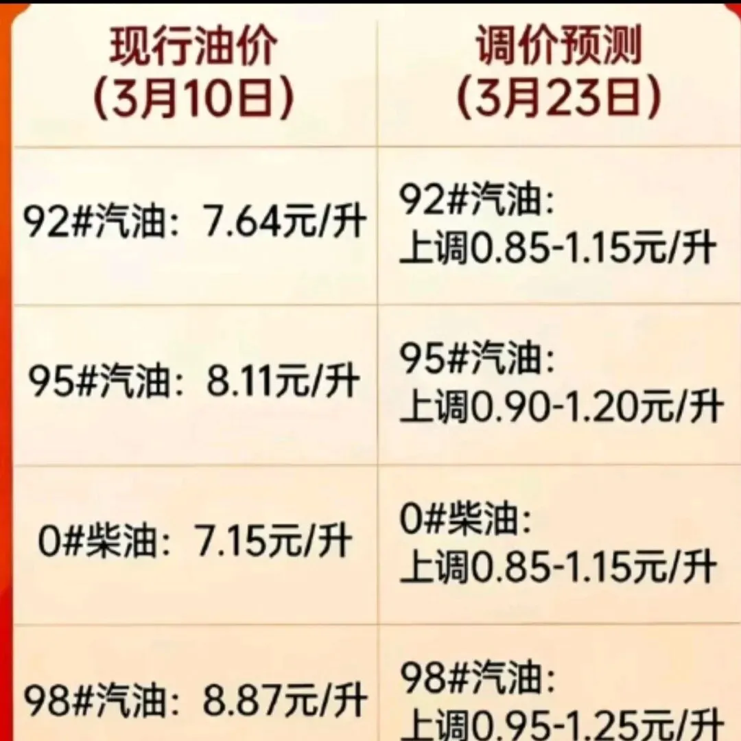 - 3月24日0时国内成品油大幅上调:汽油每吨涨1160元,柴油每吨涨1115元,调价幅度创近期新高
