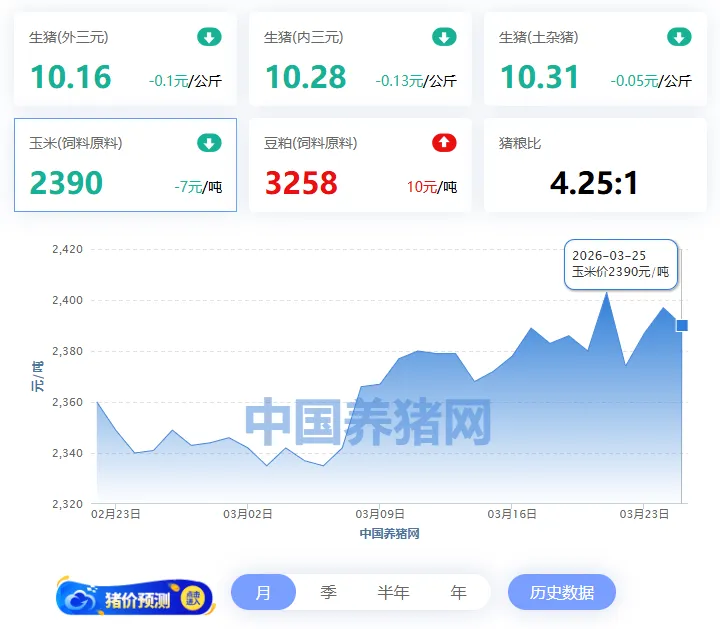 2026年03月25日-中国养猪网 全国玉米价格走势图及涨跌表