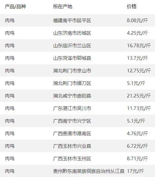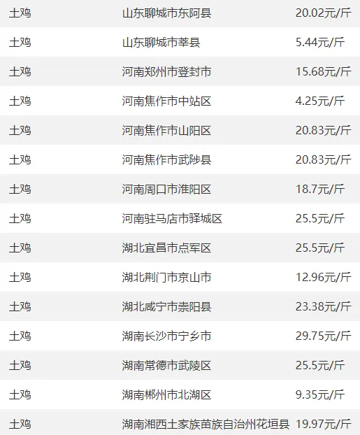 肉鸡、土鸡、鸡苗、鸡蛋等今日报价