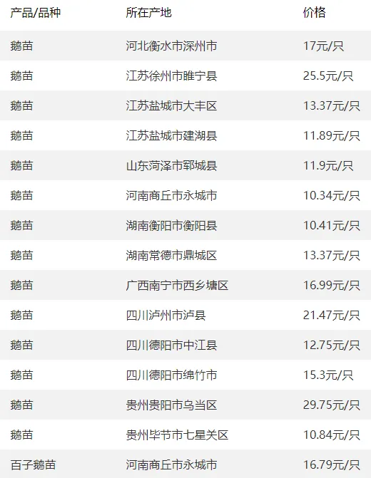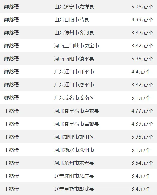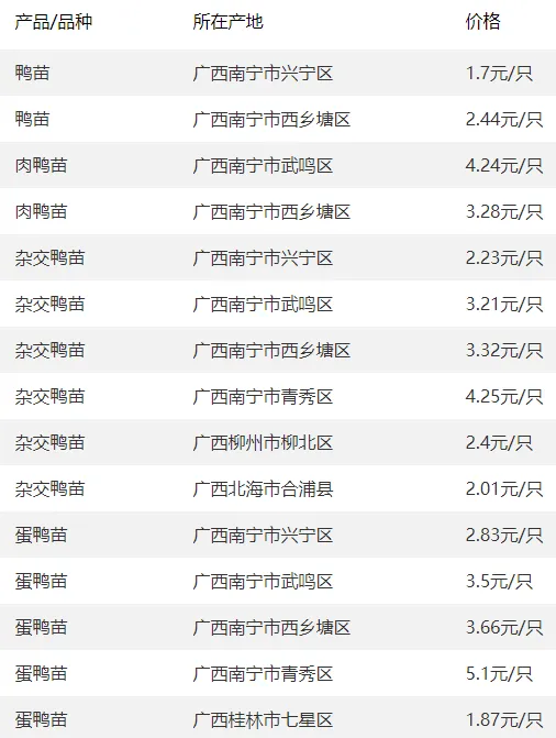 活鸭、鸭苗、鸭蛋、鹅苗等今日报价参考
