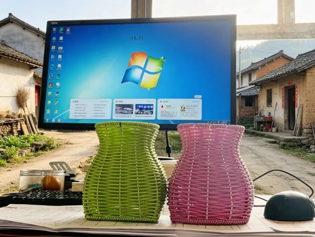 ? ? ? 天刚蒙蒙亮,我就扛着铁锹去羊圈清粪,裤脚沾着泥点子,手上还留着羊粪的腥气。我看到两个四五岁的小宝宝就来我家了,刚进屋他们扑过来,一人举着一个粉绿相间的编织花瓶,奶声奶气喊:“外爷,给你!”
