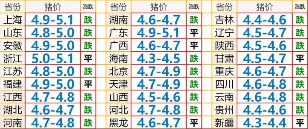 3.26跌了下跌猪价跌势拦不住! 养羊网 2026-03-25 3.26跌了下跌猪价跌势拦不住! 养羊网 2026-03-25 上一篇:【猪价早报】2026.3.26全国统一价格!! 下一篇:【明日最新猪价】3月26日全国猪价(已更新!) 您可能还会对下面的文章感兴趣111: 相关文章 近期价格更新!!! 近期价格更新!!! 衢州原种母猪价格 2025年4月13日全国各地生猪价格信息