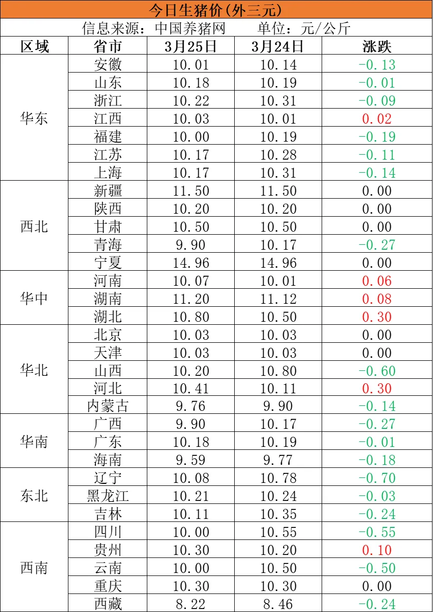【3月25日猪价】供需失衡!屠宰端需求难有明显回暖