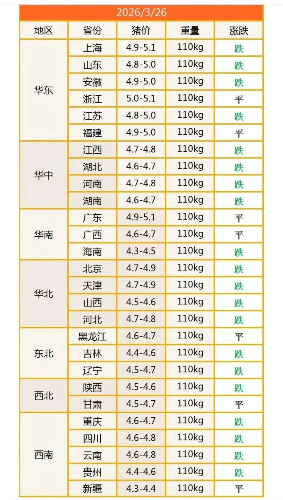 2026年3月26日全国猪价最新走势 养羊网 2026-03-26 2026年3月26日全国猪价最新走势 已关注 关注 重播 分享 赞 视频详情 ? ? ?? ? ? ?全国猪价最新价格参照:催肥界的王炸产品??【肉畜肽白金】-央视上榜品牌国家专利超分子“胶束中药”成分,育肥猪健康增重催肥,节约成本,真正帮咱们养殖户创富增收??? 已关注 关注 重播 分享 赞 视频详情 已关注 关注 重播 分享 赞 视频详情 已关注 关注 重播 分享 赞 视频详情 养羊网 2026-03-26 上一篇:猪价继续探底!2026.03.26鼎王猪价播报早知道! 下一篇:1. 养羊虽苦,贵在坚持 您可能还会对下面的文章感兴趣111: 相关文章 11月8日猪副行情 1月21日鸡蛋价格【回复“报价”免费查附近价格】 近期价格更新!!! 2026.03.12河北鸡蛋价格