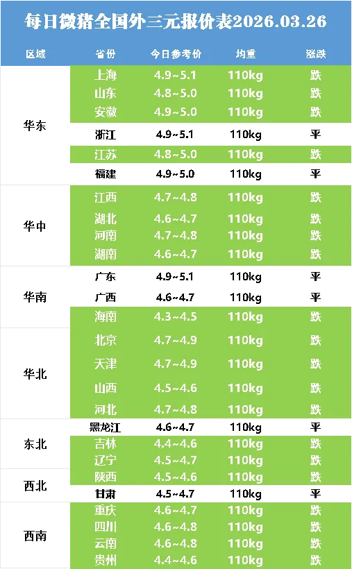 明日最新猪价2026.03.26——发改委价格监测中心:猪粮比正式破5 ! 将触发连续收储点击蓝字关注 猪价不错过