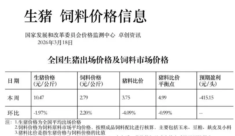 明日最新猪价2026.03.26——发改委价格监测中心:猪粮比正式破5 ! 将触发连续收储