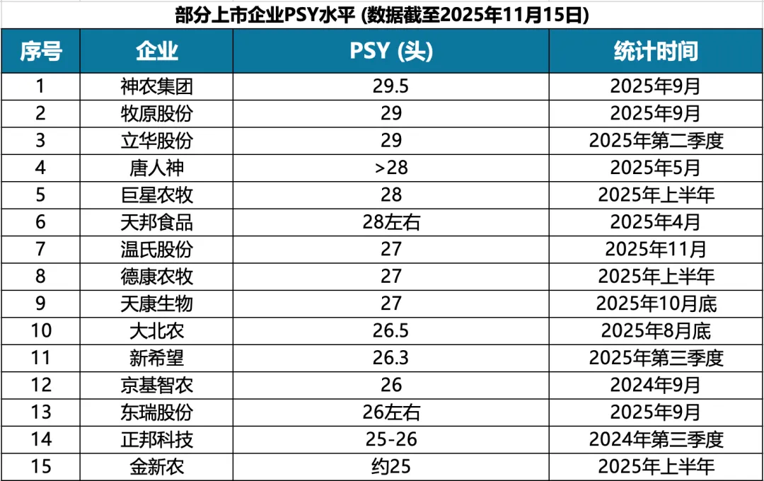 对于自繁自养猪场,种猪群的效率直接影响分摊到每头商品猪的饲料成本。核心指标是PSY(母猪年提供断奶仔猪数)。