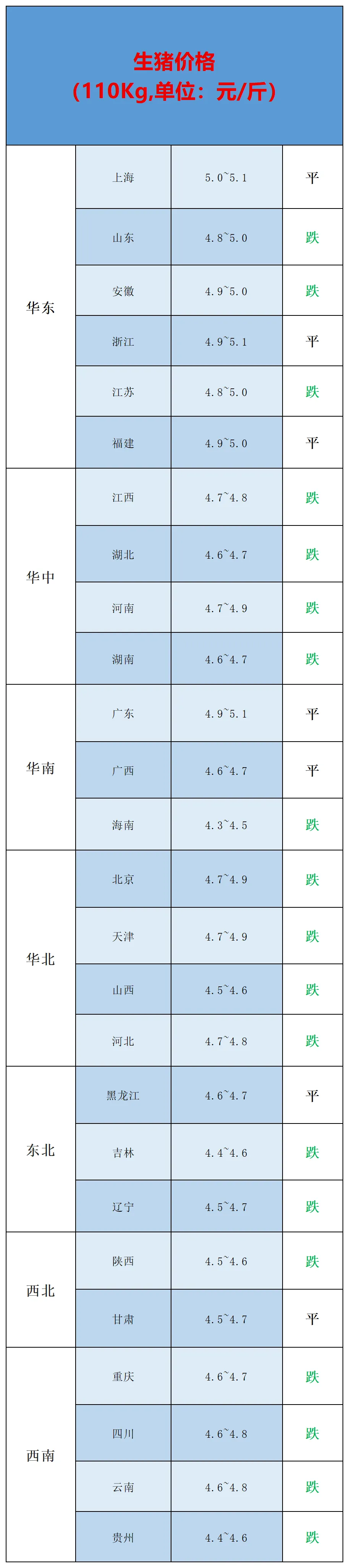 猪价日评:今天猪价下跌。当前市场仍处供应高峰,养殖端深度亏损,虽有收储及产能调控政策托底,但短期效果有限。终端消费依旧疲软,屠宰走货一般,预计近期猪价仍震荡偏弱。