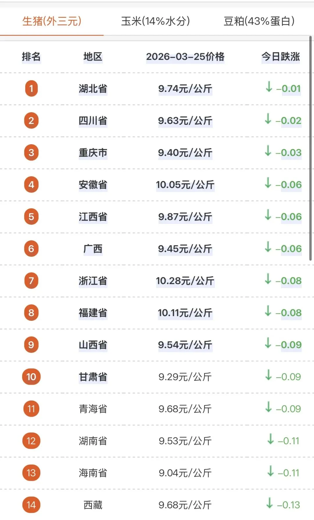 一则3月25日发布的行业消息,如同一记重锤,砸在了无数生猪养殖户的心头。数据显示,全国已有17个省份的猪价跌破5元大关。在某些大型养殖场,300斤的成品猪卖不到5.2元,而250斤的仔猪,价格甚至已经跌破4.9元。