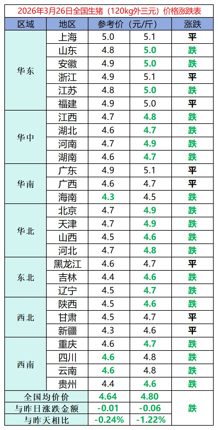 今日猪价 | 2026.3.24 结构性过剩格局未改,猪价仍在寻底路上