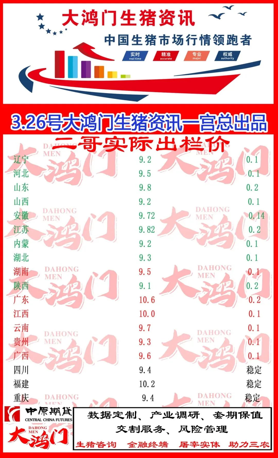 2026年03月26日 广东区二元杂接货价上调为5.0元/斤 三元杂接货价上调为5.3元/斤