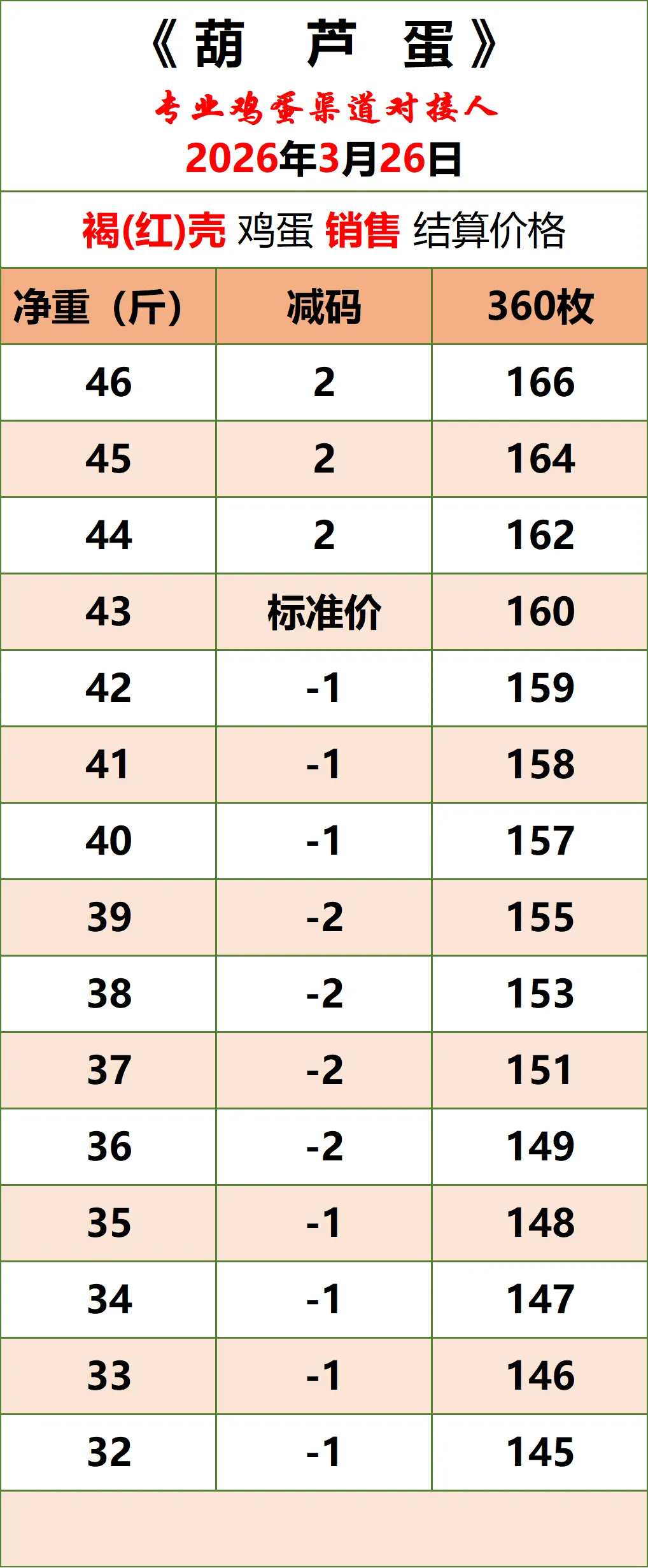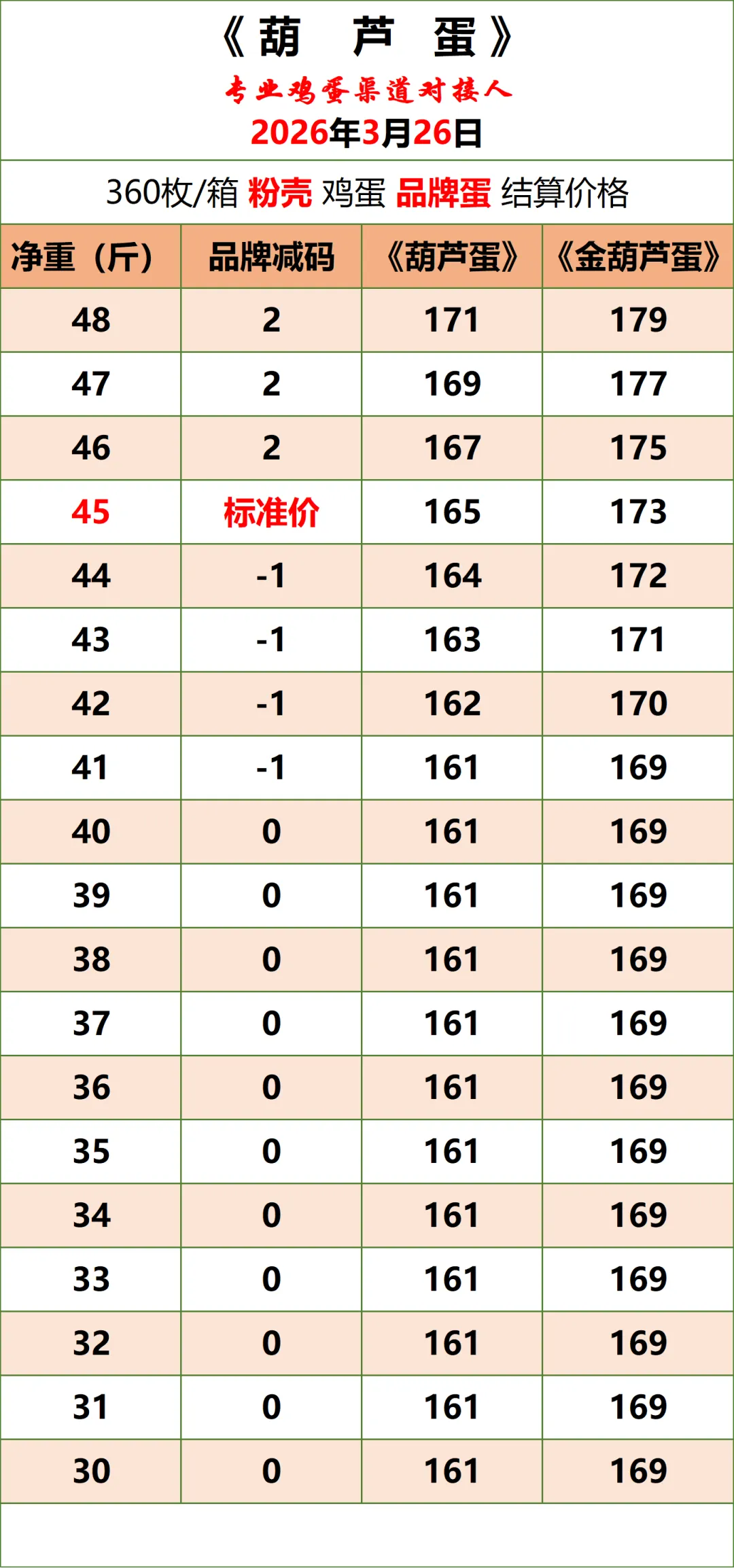 2026年3月26日《葫芦蛋》鸡蛋价格