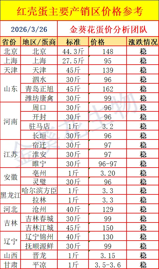 【蛋价预报】2026-3-26最新鸡蛋价格