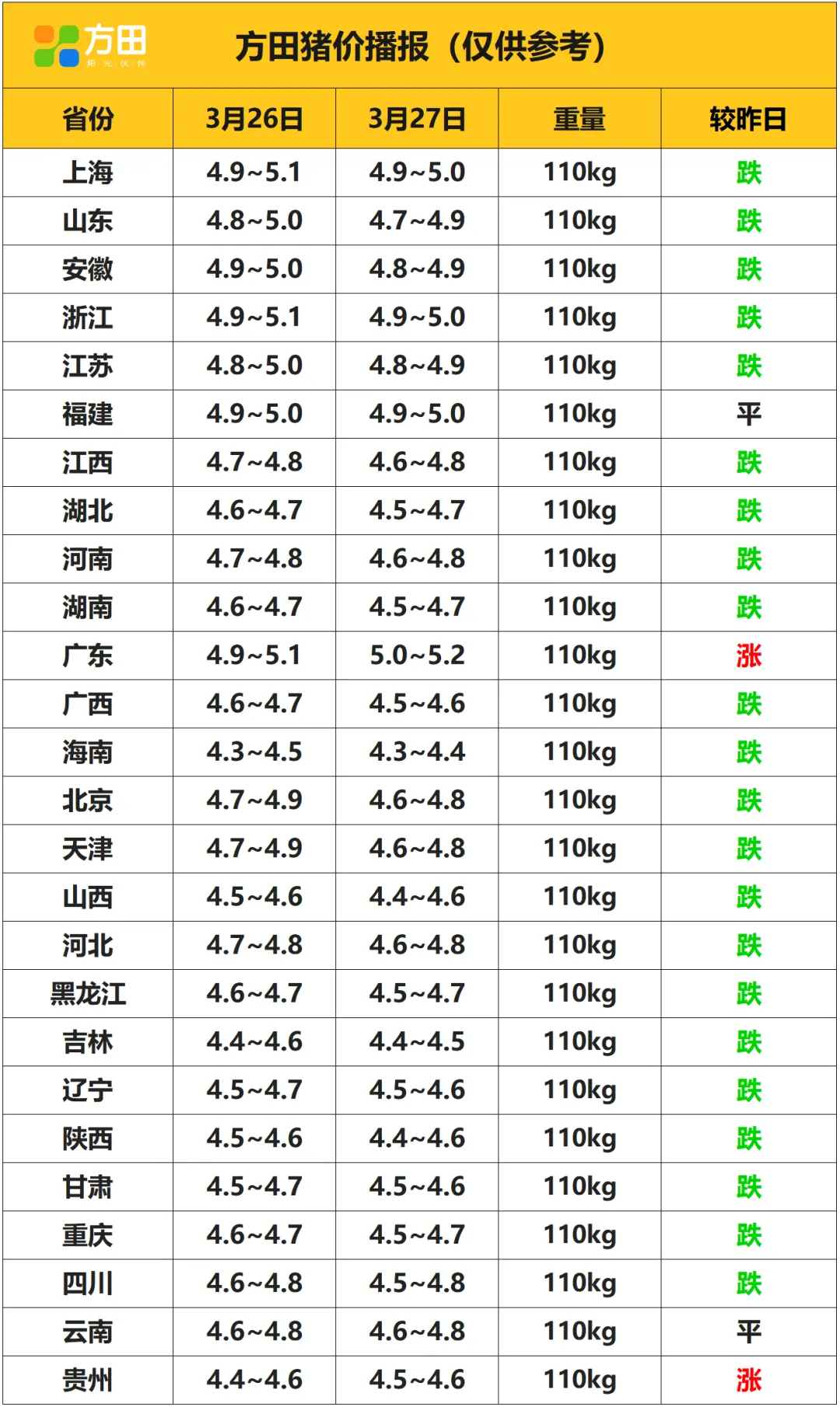 猪价丨3月27日 明日猪价早知道 养羊网 2026-03-27 猪价丨3月27日 明日猪价早知道 养羊网 2026-03-27 上一篇:【鸡蛋价格】2026.3.26--明日蛋价(以稳定为主!) 下一篇:《养羊别瞎治!每月1次体检+3步辨病,干瘦/拉稀精准搞定》 您可能还会对下面的文章感兴趣111: 相关文章 感谢Target让我暴富!@塔吉特百货 梦想城镇|12*12正方形畜牧区布局+扩充! 农业局专家:这样养羊,1年回本,2年买楼! 2025年4月13日全国各地生猪价格信息