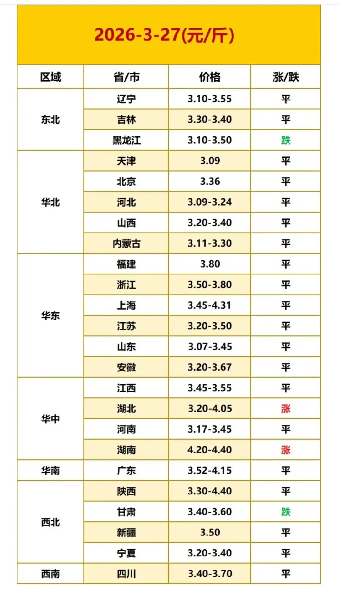 2026年3月27日全国鸡蛋价格最新走势 ? ? ? 全国鸡蛋最新价格参考: