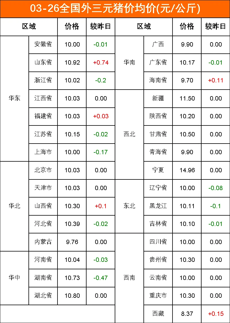 明日猪价:2026-03-27(元/斤)贵州4.5-4.6涨?新疆4.2-4.4跌 黑龙江4.5-4.7跌
