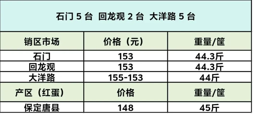 大洋路鸡蛋价格2026年 3 月 27 日报价 养羊网 2026-03-27 大洋路鸡蛋价格2026年 3 月 27 日报价大洋路 5 台,价格 155-153 元,货快,没剩车,明天回 4 台附近。 养羊网 2026-03-27 上一篇:【养猪行情】2026.03.27-猪价行情! 下一篇:2026年3月28日 全国猪价 您可能还会对下面的文章感兴趣111: 相关文章 长白山抚松县人参的坑 开门红!2026年1月1日猪价一片红! 近期价格更新!!! 2025年4月13日全国各地生猪价格信息
