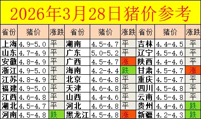 2026年3月28日猪价参考:低位博弈持续,行业静待磨底破局