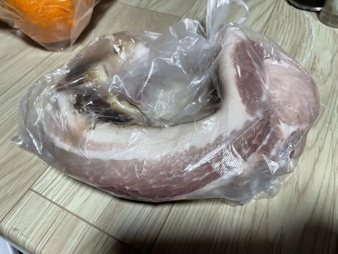 一大早,店里的猪肉搞特价,一堆人围着,我想着正好中午要吃,也去凑热闹,五花肉8.99元,前膀肉7.99元,感觉这肉价要回到20年前了,也太便宜了吧,我大手一挥,让师傅给割了一刀,看着挺宽的一条五花,才花了23.5元。